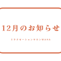 こんにちは!リラクゼーションサロンWAHAです!2025年、最後の月となりまし…